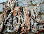Holzbohle bearbeitet, teilweise eingebrannte Strukturen, |