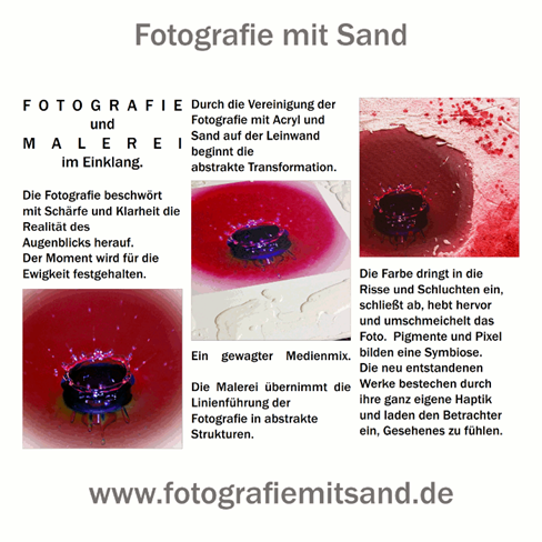 Ein Gemeinschaftsprojekt mit Kathrin Battenstein — Fotografie trifft Sand. Stativ und Staffelei gehen zusammen mit Pinsel und Pixel. Quasi verpixelt und verpinselt… Neugierig? Mehr Informationen gibt es auf www.fotografiemitsand.de |